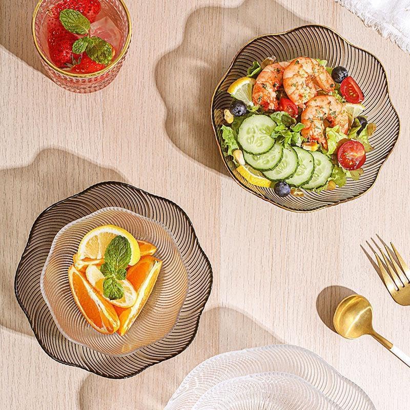 AREXOL - طقم اطباق تقديم زجاجية فاخرة من قطعتين مع حافة ذهبية انيقة للحلويات والفواكه والمقبلات مثالية للاستخدام اليومي والمناسبات الخاصة