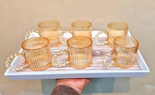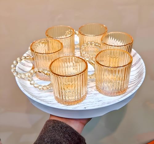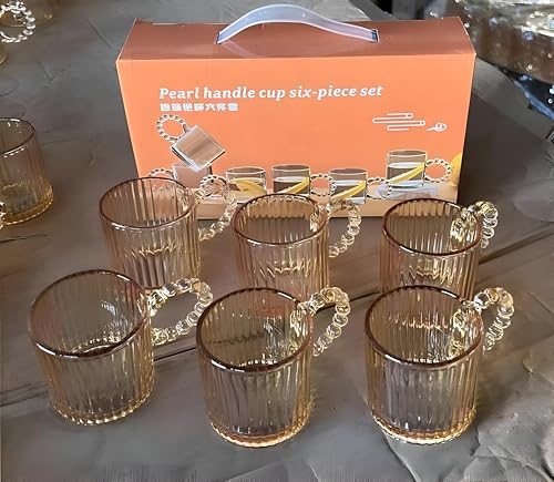 Generic - Luxury Glassware Set- Six amber thermal coffee cups with crystalline beaded handles and ribbed texture, combining functional heat resistance with sophisticated visual appeal for elegant serving moment