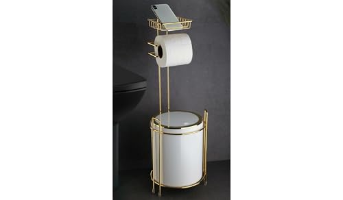 - PREMIUM DESIGN: Luxurious gold-finished bathroom tissue holder with modern brass construction and elegant white accents for sophisticated bathroom décor