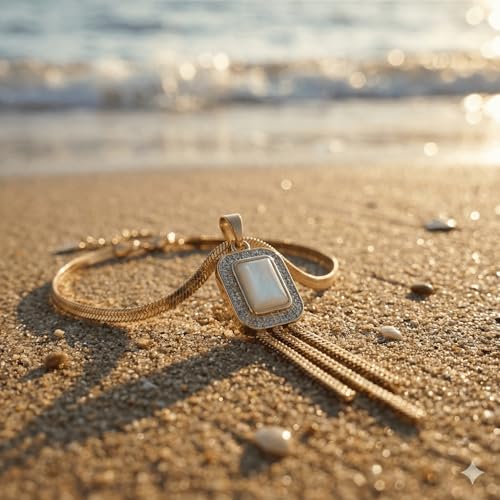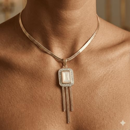 Generic - Luxury Gold Chain with "Black-White" Gemstone & Sparkling Crystals | Elegant Evening & Special Occasion Dangle Design | Elegant Women Accessories | Perfect Stainless Steel Gift