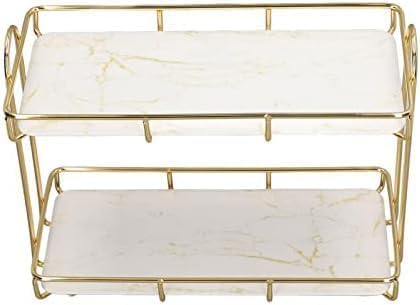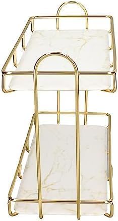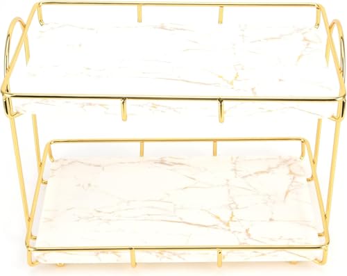 - LUXURIOUS GOLD METAL DESIGN: Elegant 2-tier organizer with a gold-coated rust-resistant frame and marble-style tray, adding a touch of sophistication to any room.