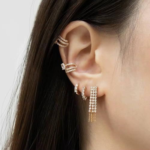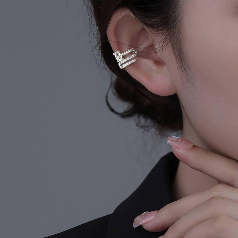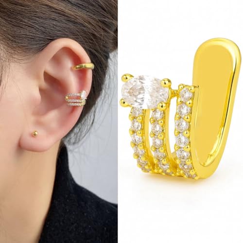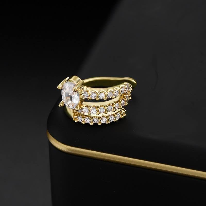 Generic - Luxury Gold Plated Ear Cuff with Cubic Zirconia – No Piercing Required, Elegant Triple Row Adjustable Clip-On Earring for Women & Girls-1Pc