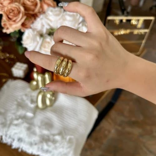 Generic - Luxury Gold Rings for Women Fashion Design with Multi Shape Rings for Daily Occasion and Party (7g)