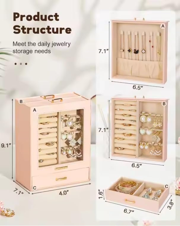 - 2) Multi-level organization: multi-tiers with separate sections to store various jewelry organized and tidy