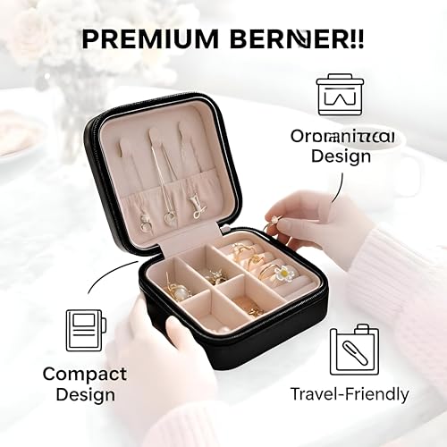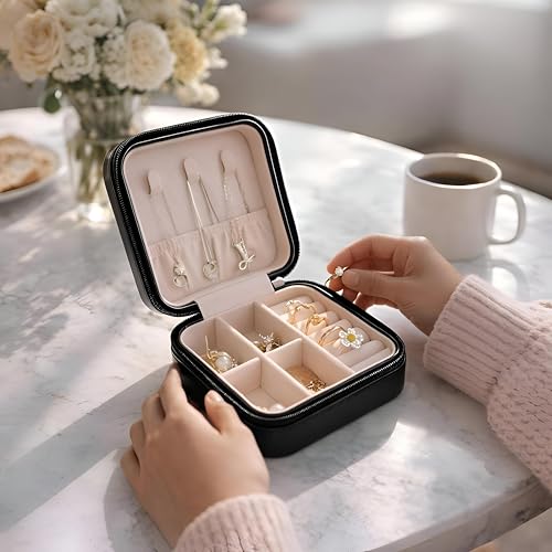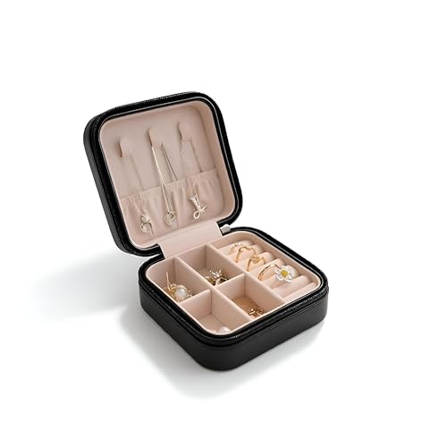 Generic - صندوق تخزين مجوهرات أنيق، علبة جلدية صغيرة بتقسيمات داخلية، رائع للسفر، بأبعاد 10×10×10 سم، مع خيارات متعددة من الألوان الأنيقة، لون أسود