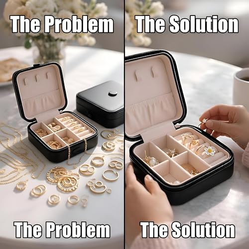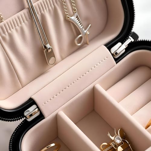 - تتيح ميزة التقسيمات الداخلية الذكية مع الفواصل القابلة للإزالة تنظيمًا مخصصًا للخواتم والحلقان والسلاسل وقطع المجوهرات الصغيرة الأخرى، مما يضمن بقاء كل قطعة منفصلة بنظام.