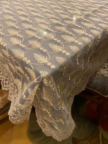 Generic - Luxury Lace Table Runner, Decorative Pattern Feather, Cream Color, Classic Design with Decorative Round Center, Elegant Table Runner for Events_160 * 250cm