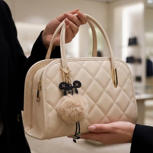 Luxury Leather Handbag with Quilted Design with Accessories and Stylish Decorative Accents - Practical Interior for Everyday Use and Various Occasions