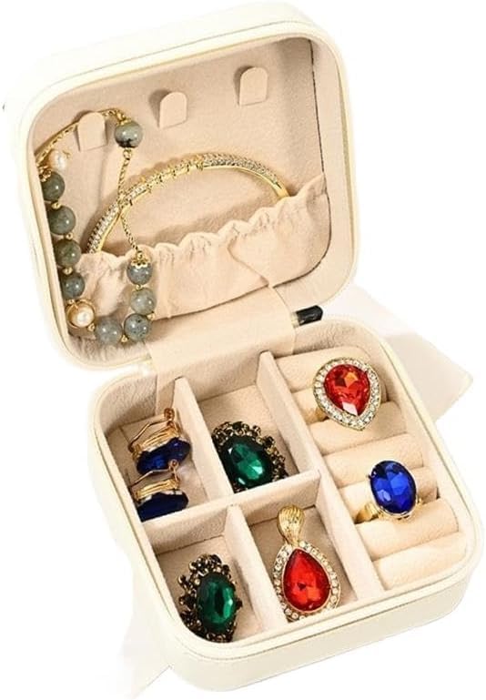 Generic - منظم مجوهرات جلدي فاخر للسفر والاستخدام اليومي، صندوق مربع صغير الحجم للخواتم والاقراط والقلائد والسلاسل، تصميم عملي للحقيبة او شنطة السفر، انيق ومتين