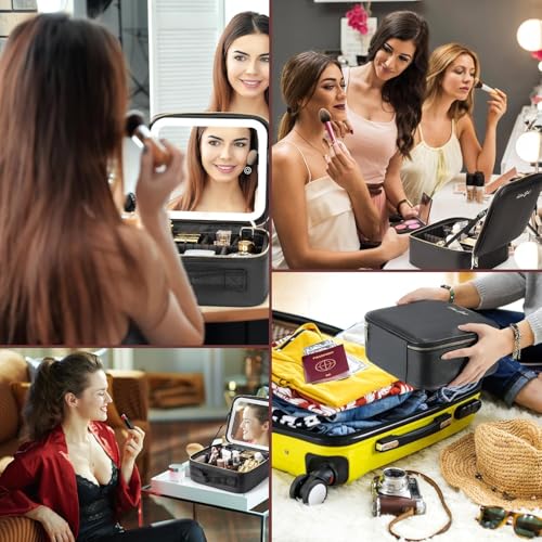 - Practical design: Elegant black makeup case with large compact mirror and intelligent interior organization for all cosmetics
