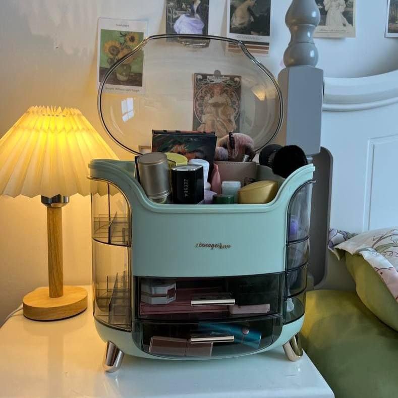 - منظم مكياج فاخر✅ منظم لتخزين مستحضرات التجميل والاكسسوارات ومقاوم للاتربة مقاس 34*20*30سم
