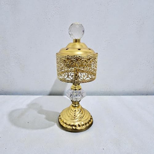 Generic - Luxury Medahab Crystal Incense Burner - Islamic Gilded Geometric Design - Porcelain Incense Burner with Gold Lid and Ethnic Dallah Shape for Home and Office