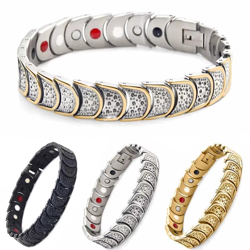 Generic - إسوارة مغناطيسية رجالية فاخرة من الستانلس ستيل – تصميم عالى أنيق ذهبى، خفيفة على اليد وقوية في الأداء
