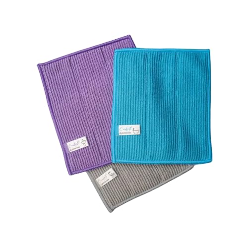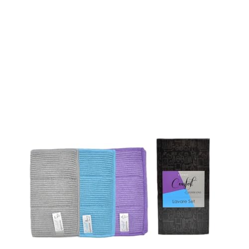 - مجموعة فاخرة: طقم مناشف ميكروفايبر مكون من 3 قطع بألوان رمادي وأزرق وبنفسجي جذابة