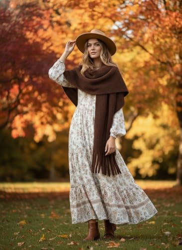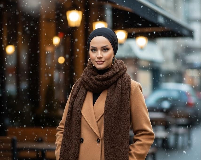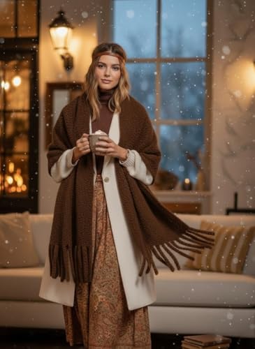 Generic - شال بوكلي فاخر متعدد الألوان، نسيج شيربا ناعم وكثيف، مع شراشيب أنيقة، متوفر بألوان الجملي والرمادي والبني الداكن