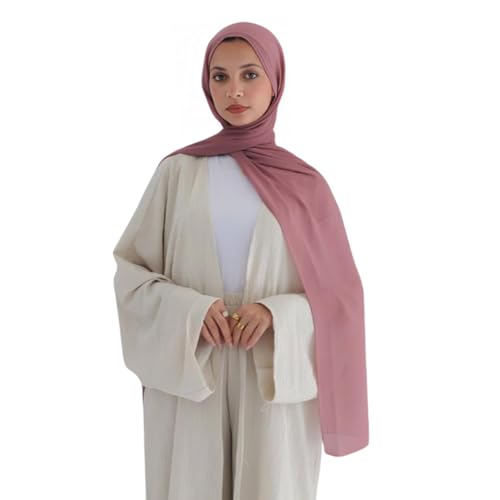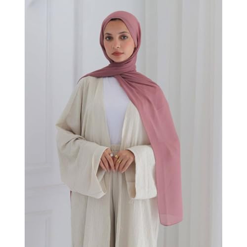 Generic - اسكارف حجاب إسلامي فاخر خامة شيفون كريب – شال وشاح رأس حريمي سادة وعصري – طرحة حجاب كبيرة مريحة للمناسبات والجامعة والاستخدام اليومي (180x75سم)