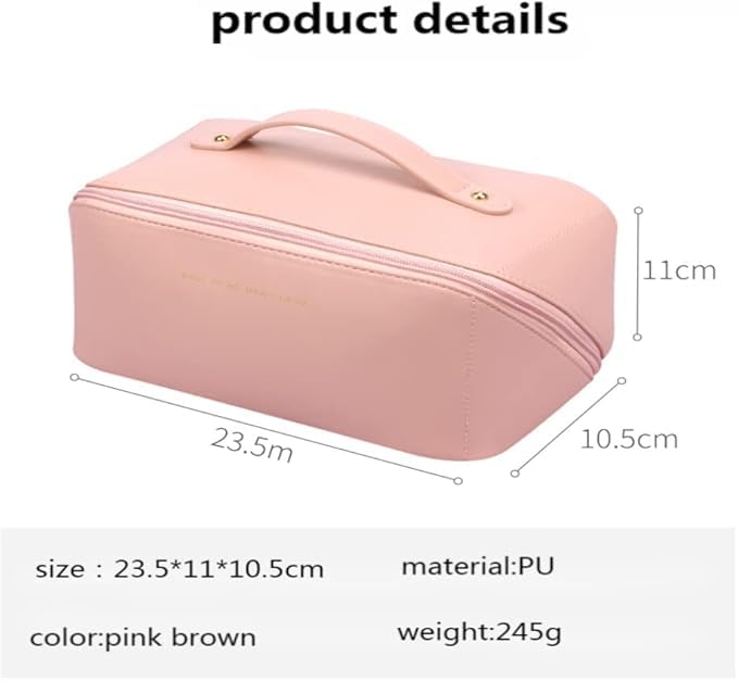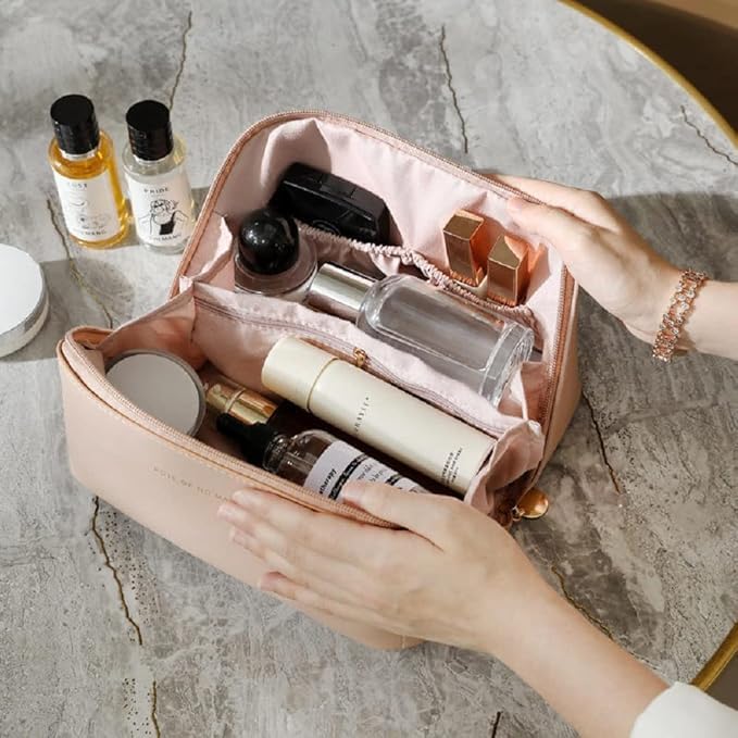 Generic - Luxury Pink Cosmetic Bag, Travel Makeup Organiser with Handle, Waterproof Toiletry Storage Case