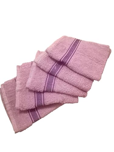Generic - مناشف قطنية فاخرة باللون الوردي، طقم مناشف حمام ناعمة مع شريط بنفسجي، قطن عالي الامتصاص _ مجموعه من 5 قطع _ الفوطه مقاس 30 * 30 سم