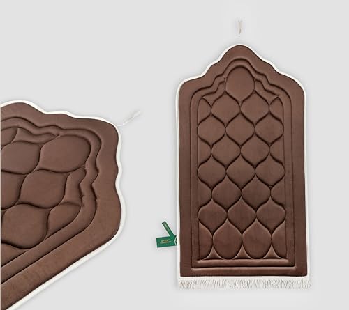Generic - سجادة صلاة فاخرة مبطنة لراحة الركبتين – تصميم عثماني أنيق – قماش قطيفة ناعم – لون ملكي جذاب – مقاس كبير120×70 سم (محراب بنى)