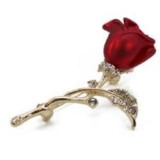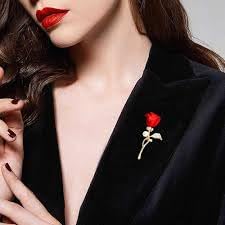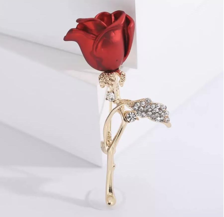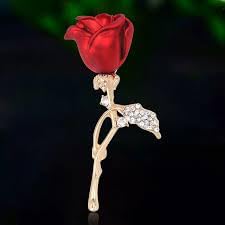 Generic - دبوس زينة فاخر على شكل وردة حمراء، مرصع بالكريستال، معدني، مع أوراق مزينة بالألماس، إكسسوار أنيق للملابس والحقائب