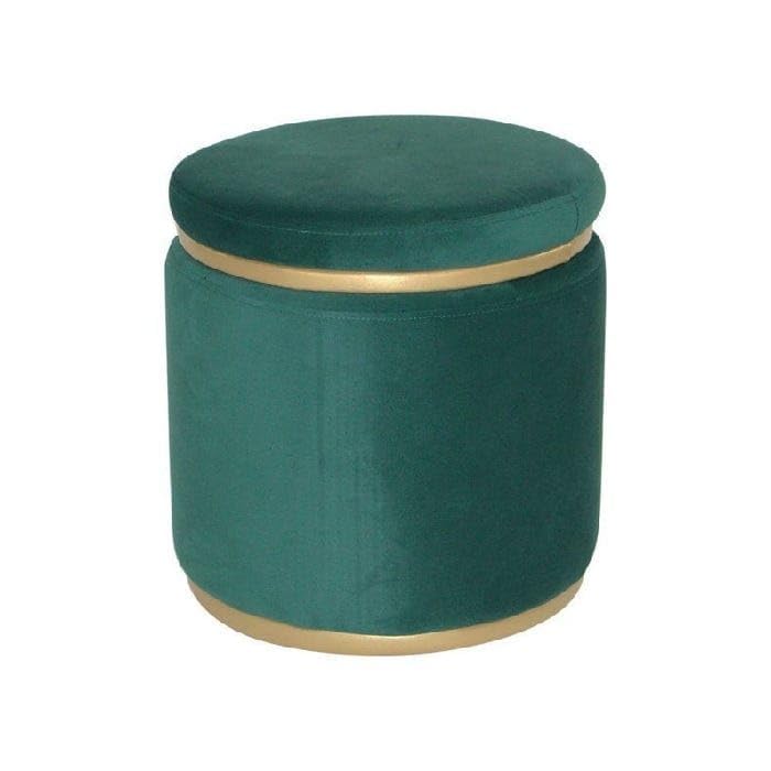 Generic - كرسي بوف مخملي دائري فاخر، أخضر زمردي مع تفاصيل ذهبية، مقعد تخزين للديكور المنزلي