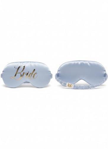- خامة فاخرة: قناع نوم من الساتان الناعم الفاخر بلون أزرق فاتح مع نص ذهبي أنيق بعبارة "Bride"، مثالي للمناسبات الخاصة