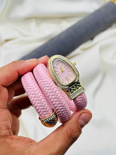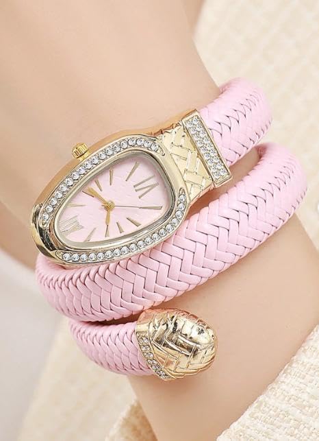 تصميم ملفوف على شكل ثعبان، حزام جلدي مضفر، إطار مرصع بالكريستال، إطار مطلي بالذهب، حركة كوارتز، خيارات ألوان متعددة الألوان، زخارف ثعبان ملفوفة، ضبط دقيق للوقت، جلد جيد التهوية، هيكل خفيف الوزن، قطعة إكسسوار مميزة، سوار سربنتين أنيق، إطار فاخر، هيكل جلدي مرن، يتطلب الحد الأدنى من الصيانة، راحة طوال اليوم، تصميم متعدد الاستخدامات، تصميم فني، صورة ظلية جريئة، أناقة راقية
