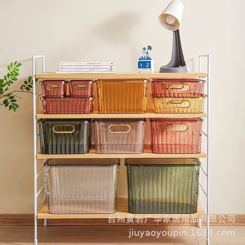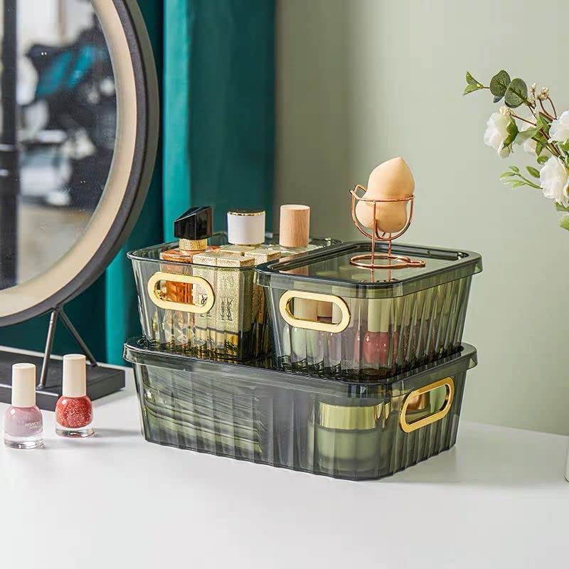 Spaceshoop - Luxury Transparent Multifunctional Office Storage Acrylic Cover Box, Skin Care Products, Decoration Table, Waterproof and Dust Resistant Box, Snack Storage Basket (Transparent White, Medium Size)