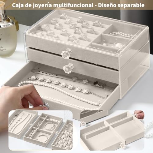 Generic - منظم إكسسوارات قطيفة فاخر (3 أدوار) بمقبض كريستال؛ صندوق تخزين أنيق وموفر للمساحة للسلاسل، الخواتم، والمجوهرات ka