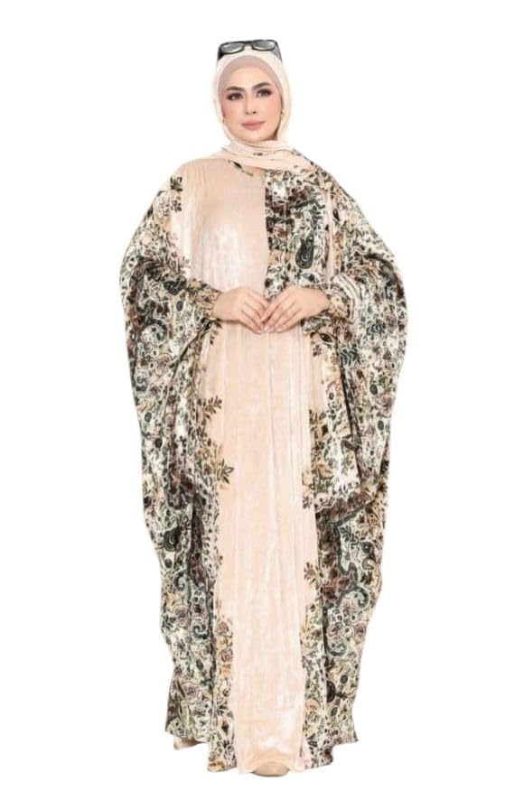 Generic - Luxury Velvet Isdal Abaya with Floral Embroidery, beige with Gold and Beige Motifs, One Size, Long Sleeve Kaftan Style for Prayer and Special Occasions إسدال ملحفة قطيفه شتوي راقي