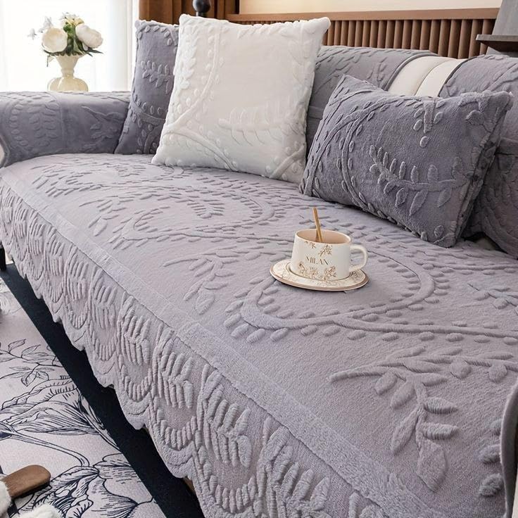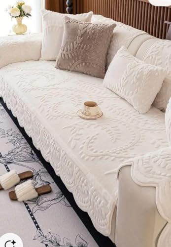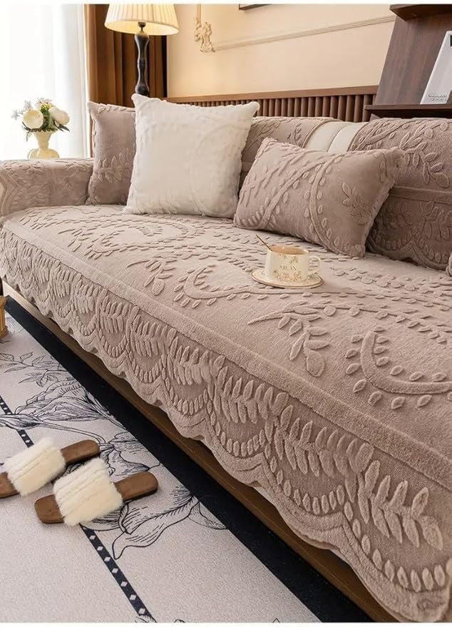 Generic - طقم اريكة مخملية فاخرة لغرفة المعيشة، 11 قطعة، قماش جاكار وردي، مقاس L 195×90 سم ومتوسط 150×90 سم، كنبة 2 كرسيين، 7 مناديل (كافيه) (بيج، 11 قطعة انتريه)