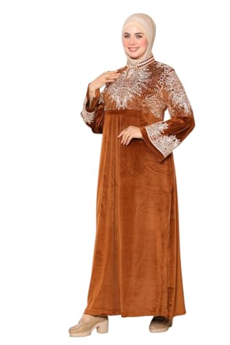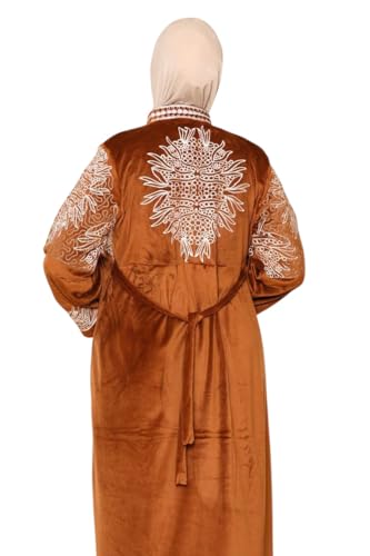 Generic - Luxury Velvet Reception Abaya for Women in Honey Color with Elegant White Embroidery Fashion Design with Drawstring Waist for High-end and Comfortable Look - XL