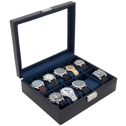 Generic - منظم ساعات فاخر - حافظة عرض فاخرة بـ 10 فتحات مع غطاء زجاجي شفاف، مصنوعة من جلد البولي يوريثين عالي الجودة للرجال والنساء، مثالية لهواة الجمع والمتحمسين