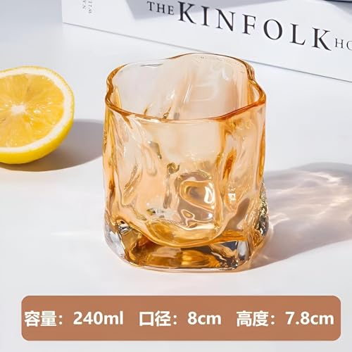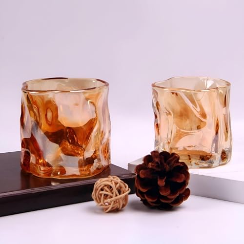 Generic - Luxury Whiskey Glasses - Amber Crystal Old Fashioned Tumblers with Unique Textured Finish, Modern Ice Cube Design, Set of 2, Premium Barware for Cocktail Connoisseurs