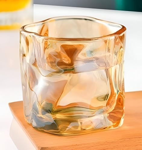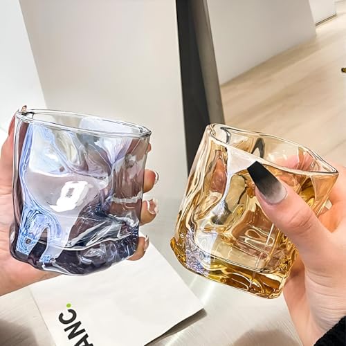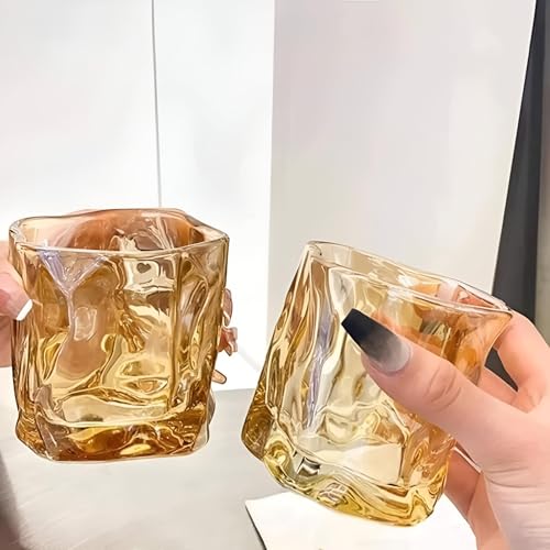 - These whiskey glasses feature a unique, handcrafted crystalline design with irregular geometric patterns, creating a captivating optical effect that enhances the visual appeal of your favorite spirits, transforming the drinking experience into an artistic display.