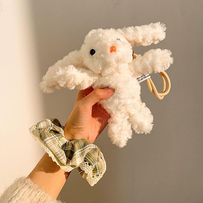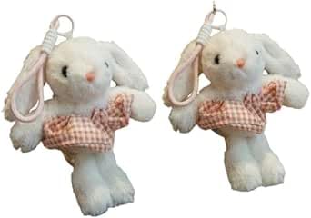 Generic - Luxury White Rabbit Bag Medallion Limited Edition Art Ornament Plush Rabbit Doll with Plaid Dress Purse Hanging Accessory