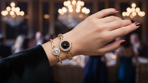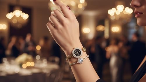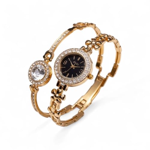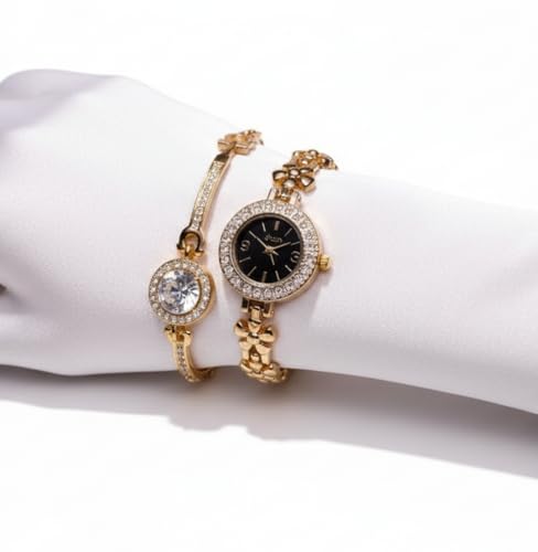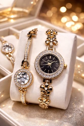 Generic - Luxury Women Gold Hearts Wrist Watch with Bracelet Gift | Stylish Casual Watch Set for Women and Bracelet Gift | Fashion Accessories | Gift for Girls and High End Styles