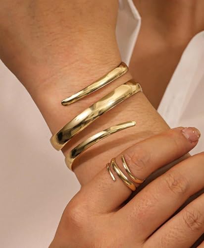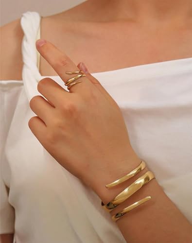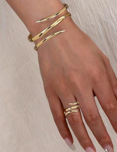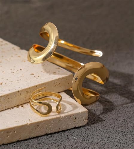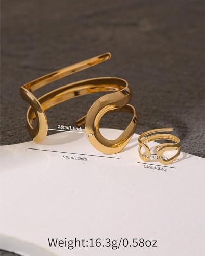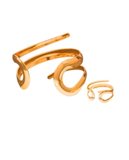 Generic - طقم مجوهرات نسائي فاخر مكون من قطعتين بتصميم هندسي ذهبي، يشمل سوارًا عريضًا وخاتمًا، مناسب للاستخدام اليومي والمناسبات الخاصة، هدية مثالية لعيد الحب.