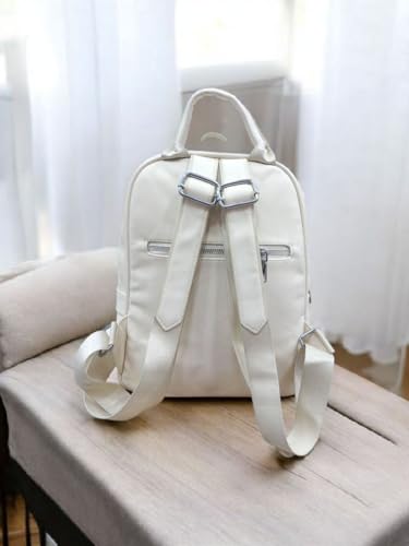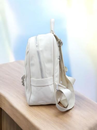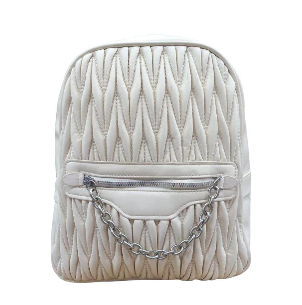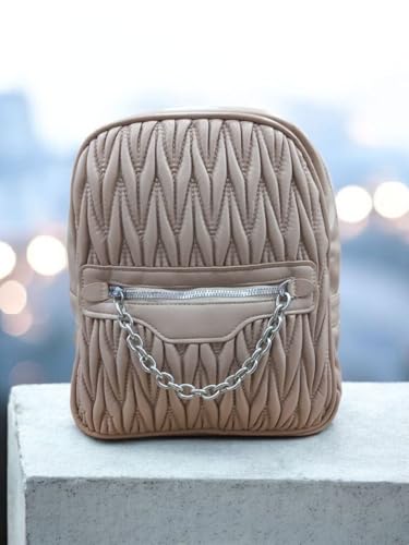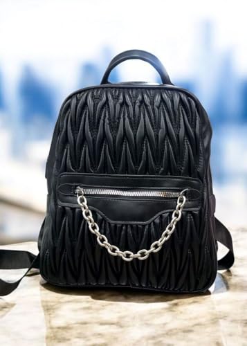 Generic - Luxury Women's Backpack with Crinkle Design, Faux Leather, with Decorative Metal Chain, Black and Beige, Medium 25x25x20cm