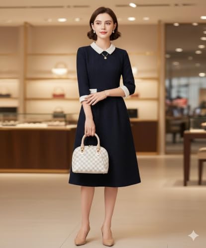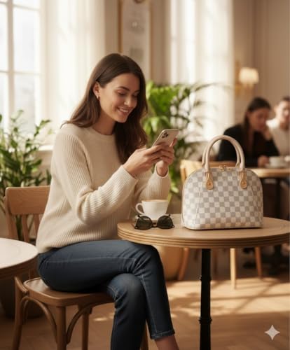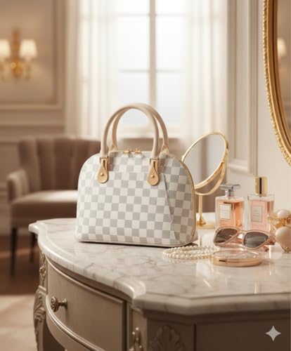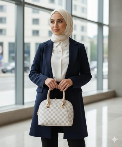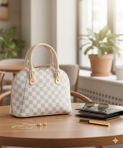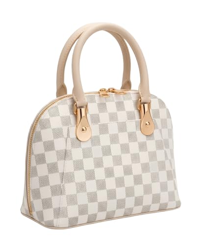 Luxury Women's Handbag with Classic Design and Functional Front Pocket - Upscale Metal Accents - Two Top Handles with Detachable Shoulder Strap