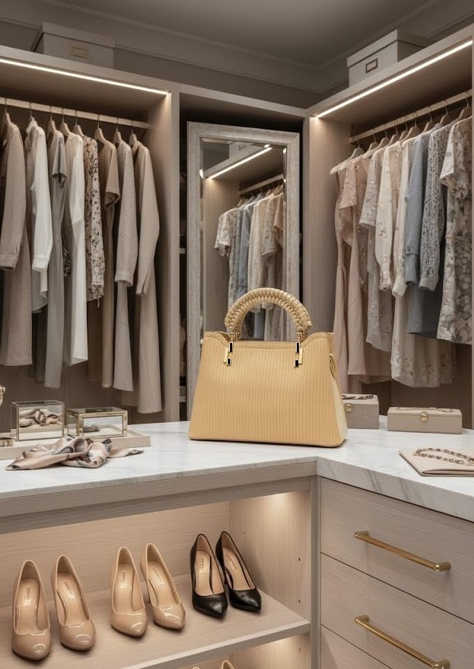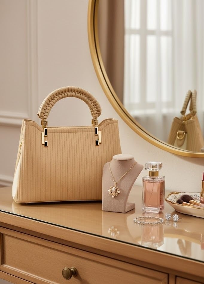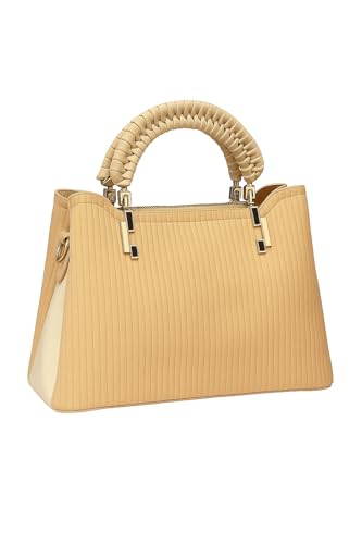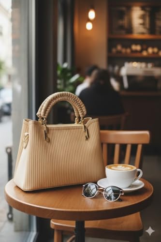 Luxury Women's Handbag with Elegant Striped Design and Padded Handle – Premium PU Leather Material with Gold Metal Accents – Classic Business and Event Bag