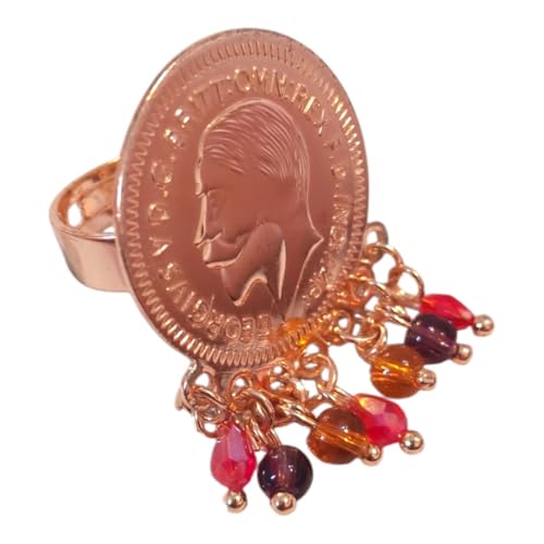 Generic - Luxury Women's Ring Gold Metal with Colorful Crystal Charms, Classic Coin Design, Rustproof