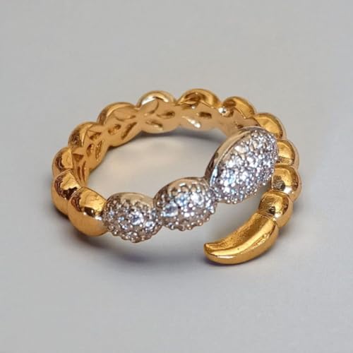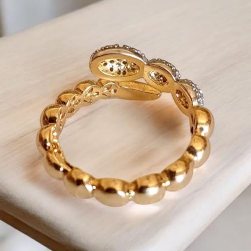 Generic - خاتم نسائي فاخر مطلي بالذهب مع كريستال زركونيا، تصميم عصري أنيق للمناسبات والحفلات