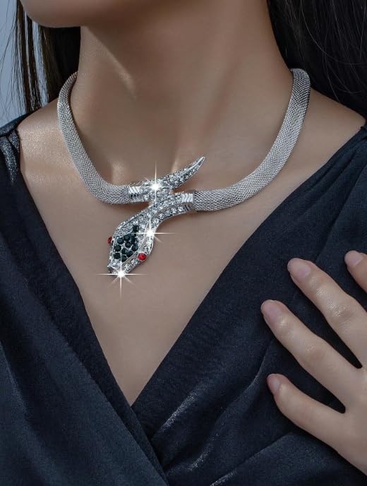 Generic - سلسلة حريمي فاخرة بتصميم ثعبان مرصع – إكسسوار رقبة لامع للمناسبات والسهرات