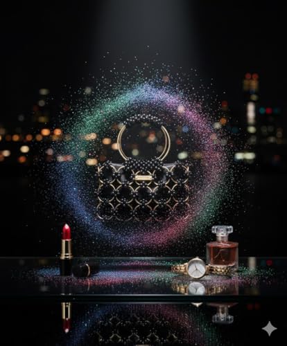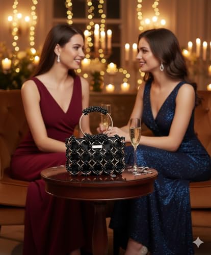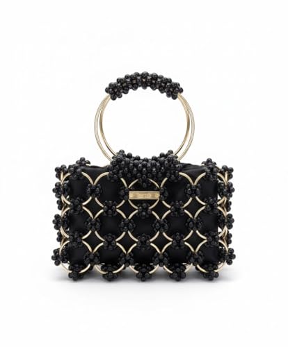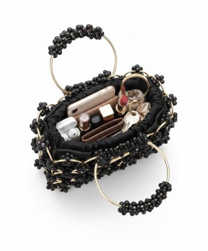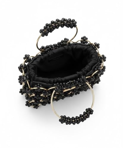 Generic - Luxury Women's Soiree Bag Classic Black Glitter Beads Elegant Handmade Elegant Handbags for Occasions Wedding Engagement Gold Metal Handle High Quality and Luxury Modern Touch
