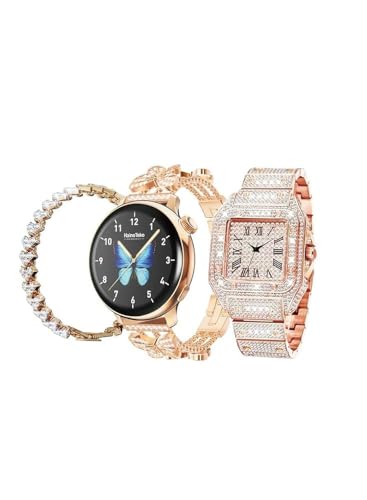 Generic - Luxury Women's Watch Set with Bracelet, Rose Gold, Crystal Stud, Classic Design, Butterfly Display, 3 Piece Set