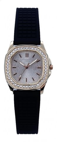 Generic - ساعة نسائية فاخرة بإطار مرصع بالكريستال، مينا براقة، سوار سيليكون مريح، ذهبي وردي