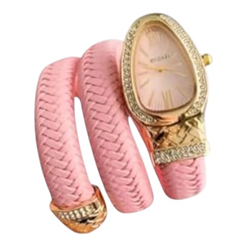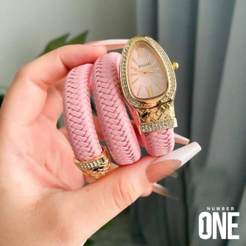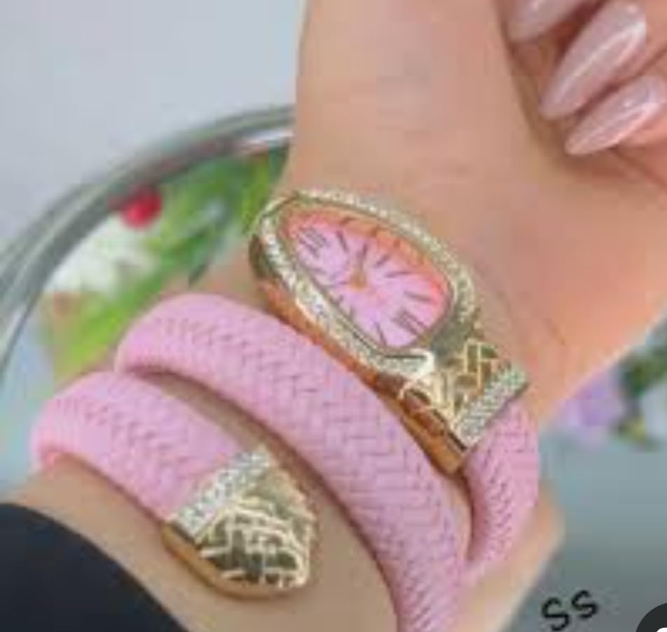 Generic - ساعة نسائية فاخرة مع حزام وردي مزين بالكريستال، إطار ذهبي