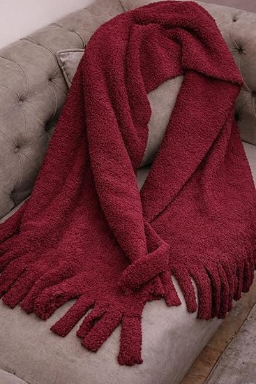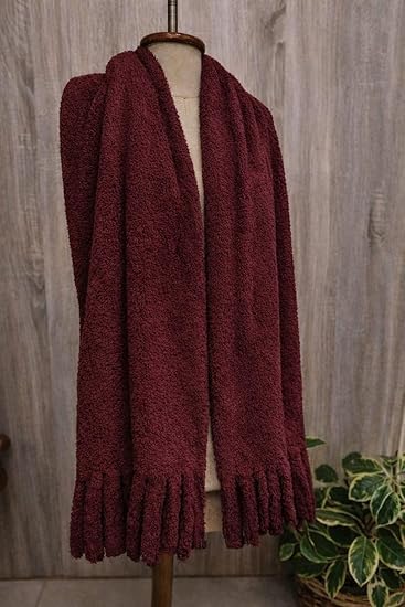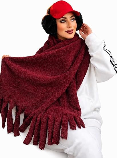 Moro Moro 3 - Luxury Women's Winter Fur Shawl Imported Polar Material Soft Plush - Maroon Burgundy Long Scarf with Tassel Warm and Elegant - Large Size 180cm*80cm