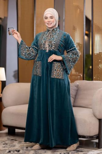 Generic - عباية قطيفة شتوي استقبال وخروج نسائية فاخرة – خامة هايدي تقيلة مستوردة مطرزة بتطريز أنيق – مقاس 1 من 60 حتى 85 كجم ومقاس 2 من 85 حتى 120 كجم